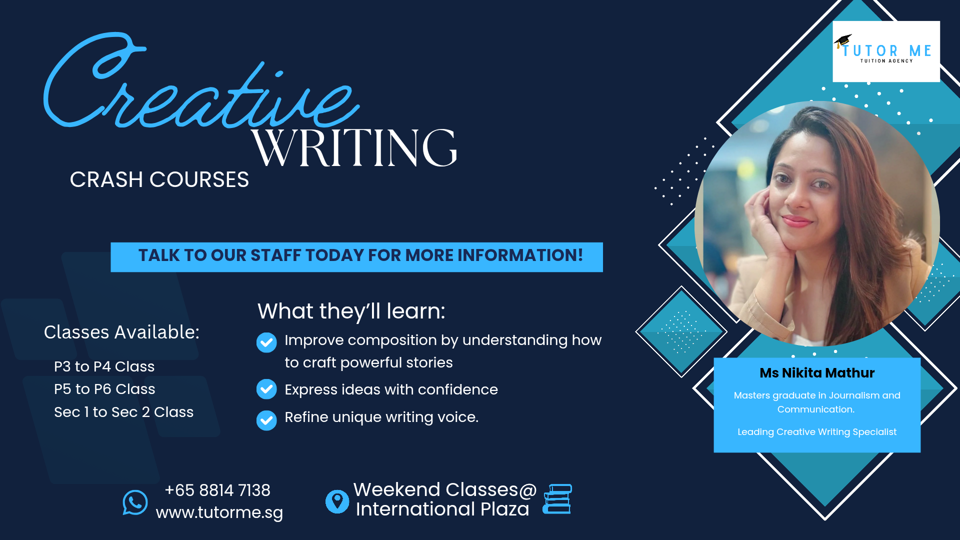 New Tutors Joined : Lian (3 years experience, Subject(s): Mathematics, Science, Chinese) | Joelle (13 years experience, Subject(s): Pre-School English, Pre-School Chinese, Pre-School Phonics, Secondary School Elementary Maths, Secondary School Additional Maths) | Mikaela (2 years experience, Subject(s): Math, science)